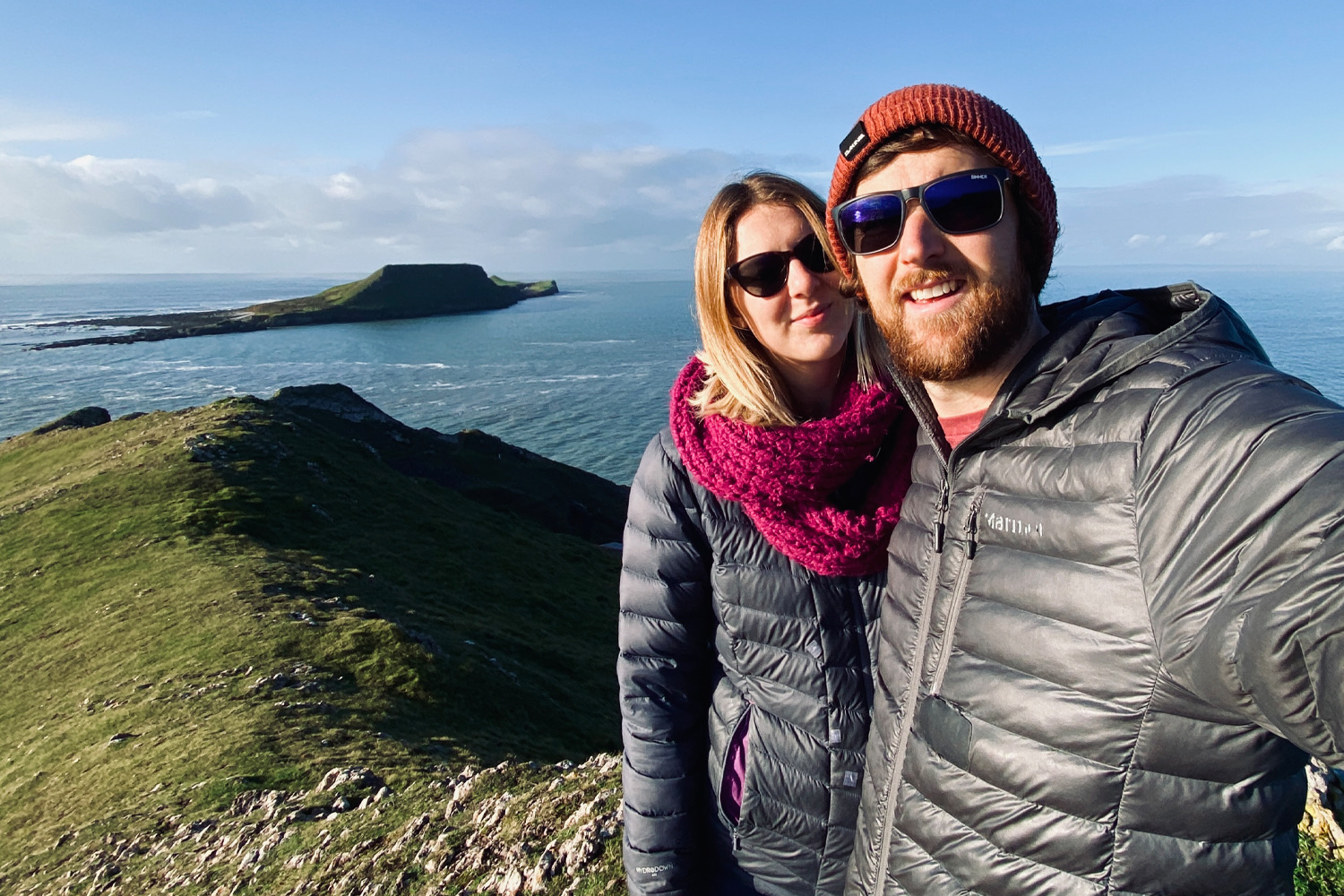 The next morning we geared up in waterproofs and headed for the Wales coast path. We have walked miles of this route before but never this particular section which heads west from Oxwich around the cliffs towards Port Eynon. After a moderate up and down climb originating from sea level, the path eventually flattens out towards the headland. At this point, the path splits and you can either continue towards Port Eynon along the cliffs, or double back via a farm track which comes to an end near Oxwich castle. For our hikes we use the OS maps app on our phones, It’s incredibly useful for getting ‘unlost’ or finding good routes in new areas. If you plan ahead you can also download the routes to use offline when no phone signal becomes a thing (which is often in rural Wales). On returning from our walk in the dry, Jess decided to take a revitalizing swim whilst I watched from the beach with two shivering dogs.